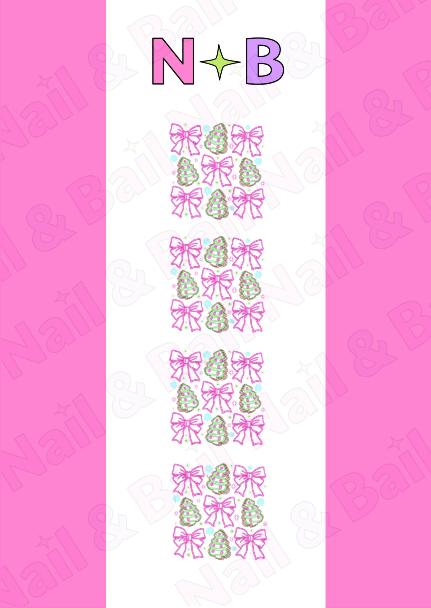 Glow all season long with Neon Noel. This sheet includes 36 designs featuring bright pink bows and glowing Christmas tree cookies with pastel lights. Perfect for bold girly holiday nails with an LED twist.