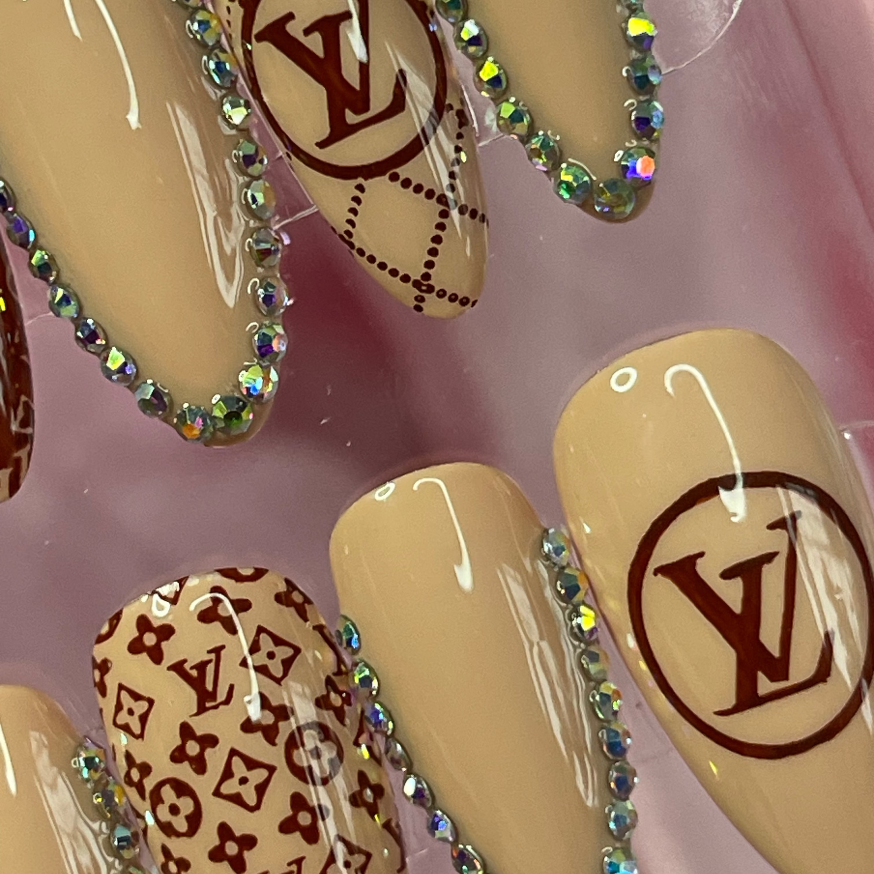 This trend also layers well with other designs like chrome brown French tips, or mixing brown bases with crystal accents.