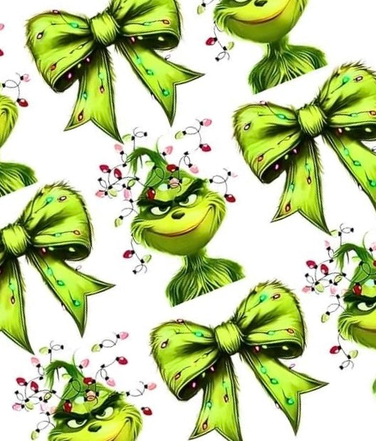 Bring Christmas cheer with a mischievous twist using Furry Grinch. This sheet includes 36 decals featuring the Grinch tangled in colourful Christmas lights and soft furry green bows that sparkle with their own string lights. Each design captures the playful chaos of the holidays with a dash of Grinchy glamour.