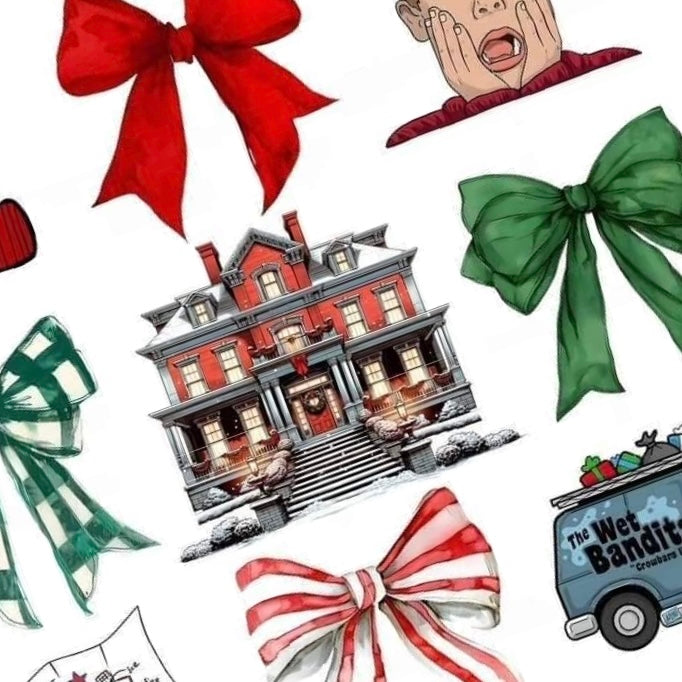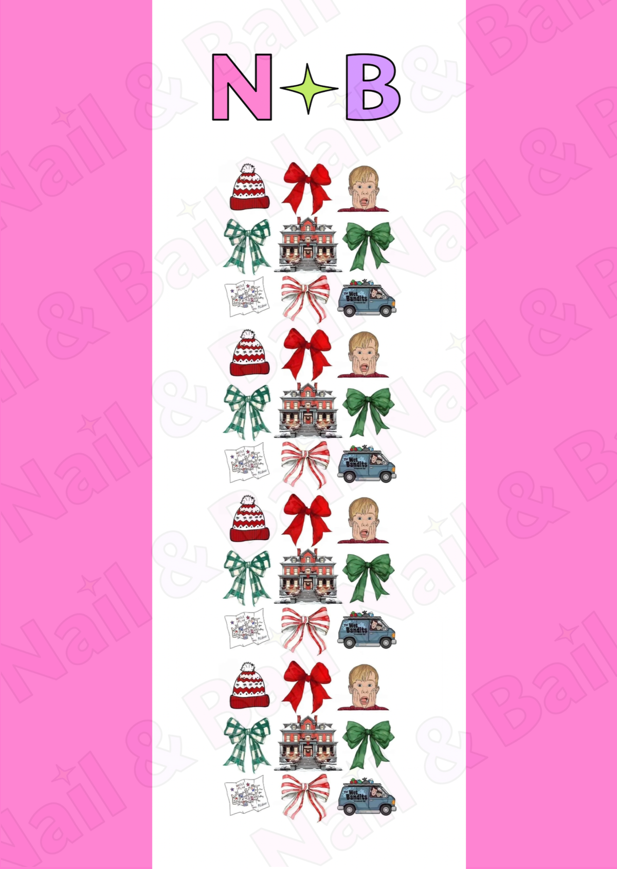 Get ready for the ultimate throwback mani with Kevin’s Christmas. This sheet features 36 Home Alone inspired decals that capture the fun and festive mischief of everyone’s favourite holiday film. You’ll find Kevin’s shocked face, the McCallister house, his little plan note, bright red and green bows, cozy winter hats, and the famous Wet Bandits van for the perfect nostalgic touch.